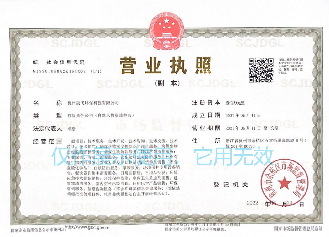 杭州辰飛環保科技有限公司是一家專業的PCO有害生物防治服務機構。是經杭州市工商局注冊登記、杭州市白蟻防治管理所、PCO協會批準的城市害蟲綜合治理消殺公司,是集除四害、白蟻消殺、除蟲、消毒殺菌、室內空氣污染治理、藥械銷售于一體的大型專業杭州有害生物防治科技有限公司。主要從事新建、擴建、改建、裝飾裝修單位建筑物的白蟻防治和白蟻預防工程,同時從事工廠、酒店、企事業單位、住宅小區和家庭的”四害”消殺和白蟻防治服務,長期向各類型客戶提供杭州白蟻消殺、除蟑螂、除老鼠、除蟲、消毒殺菌等優質服務。 本公司自成立以來,秉承“誠信、敬業、高效、務實”的發展原則,以現代化...